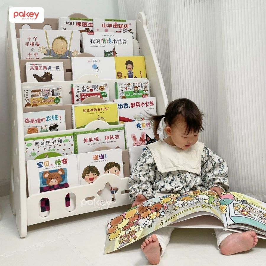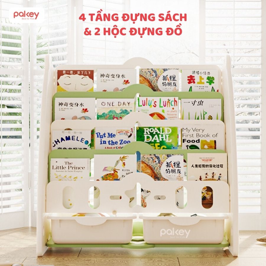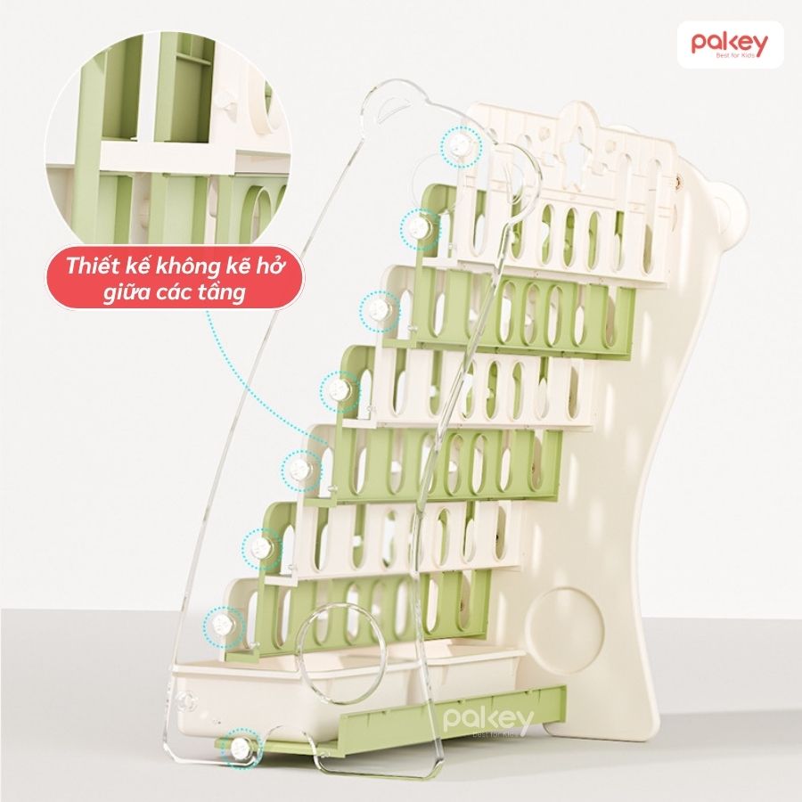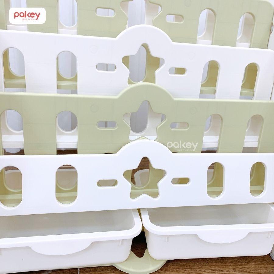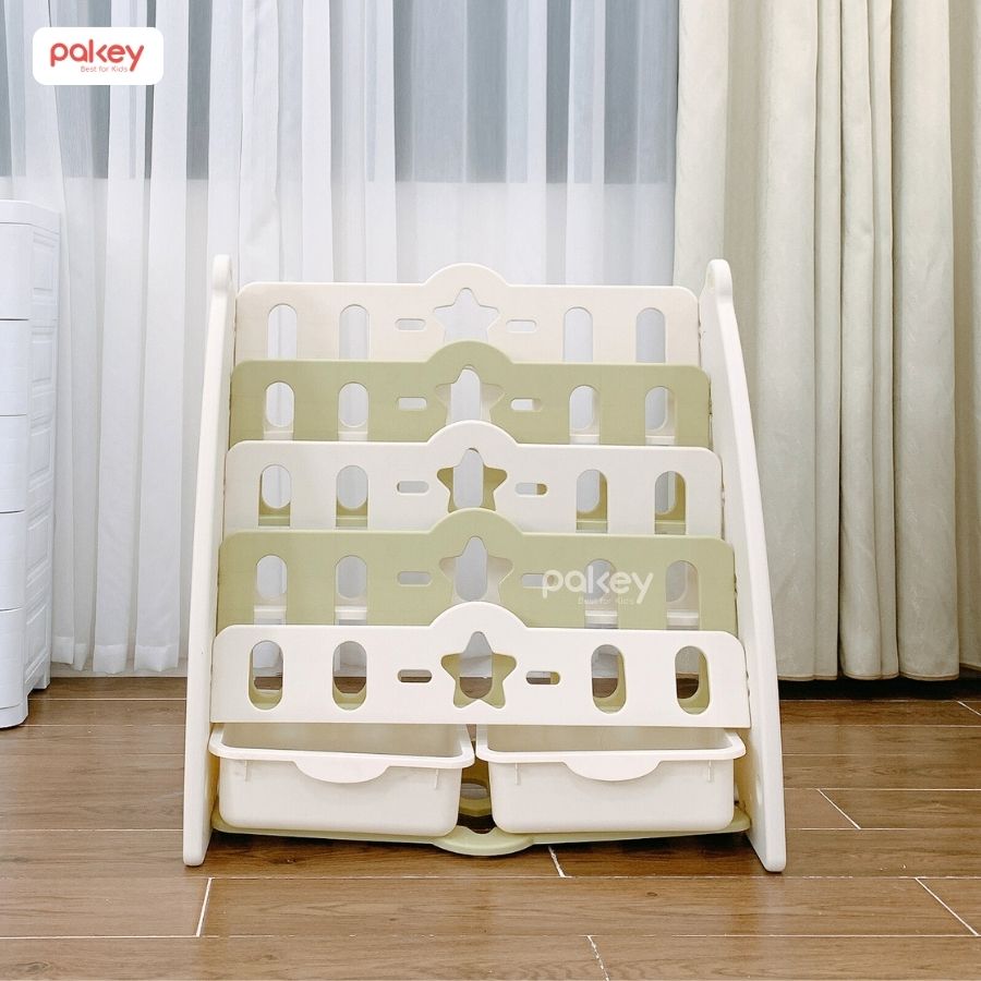 Giá sách cho bé Pakey 5 tầng kèm hộc mang đến không gian học tập ngăn nắp, gọn gàng, tạo thói quen sắp xếp đồ cho bé ngay từ khi còn nhỏ. Sản phẩm được làm từ chất liệu nhựa nguyên sinh an toàn, không màu, không mùi, thân thiện với làn da bé nhỏ.