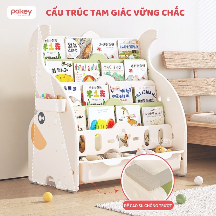 – Đế chống trượt giúp giữ cho giá sách ổn định và an toàn trên mọi loại sàn nhà. Điều này làm giảm nguy cơ trẻ làm đổ giá sách, đảm bảo an toàn trong quá trình sử dụng.
