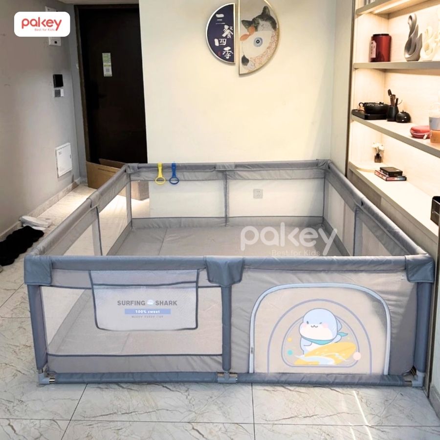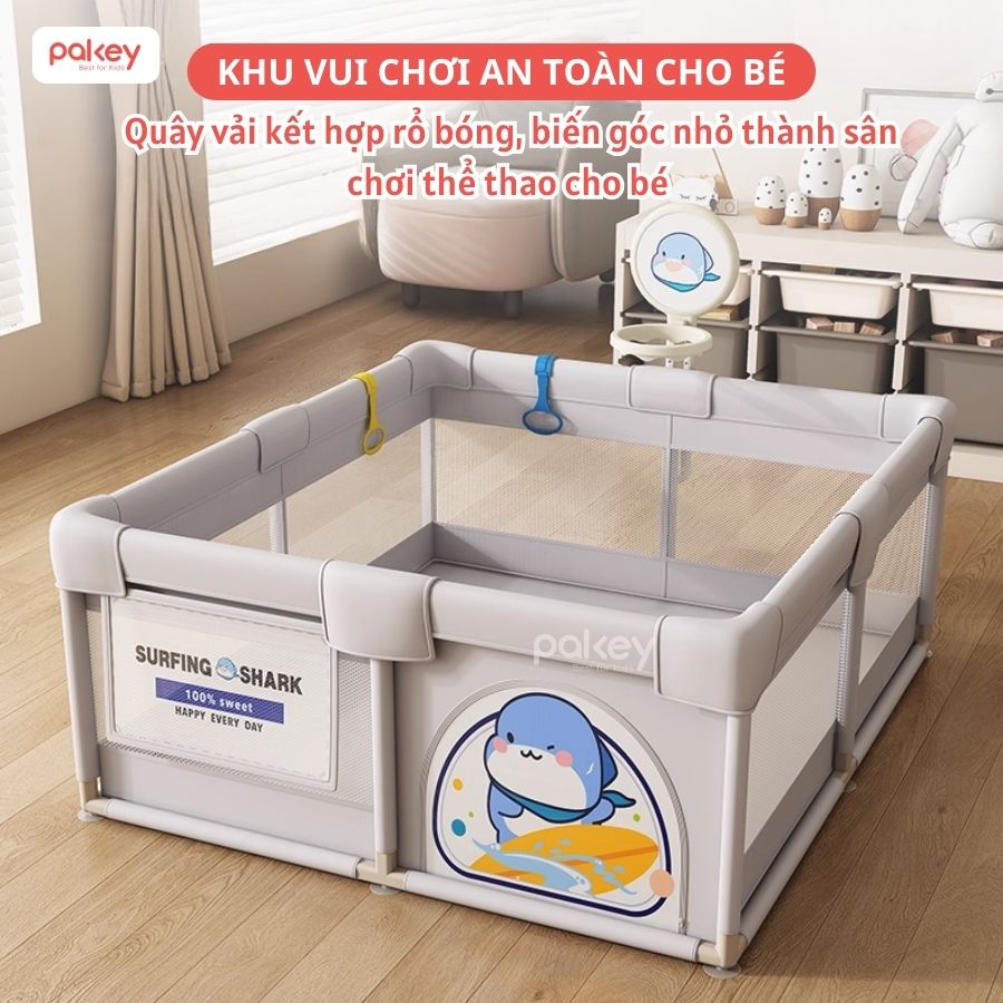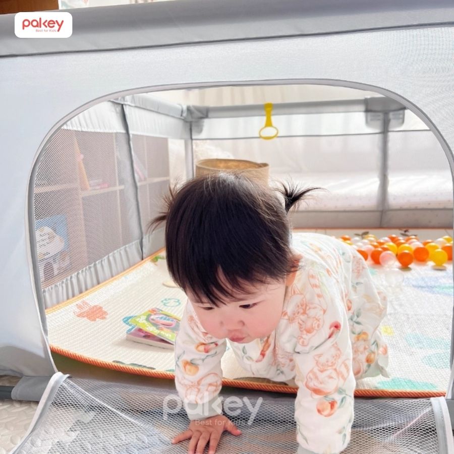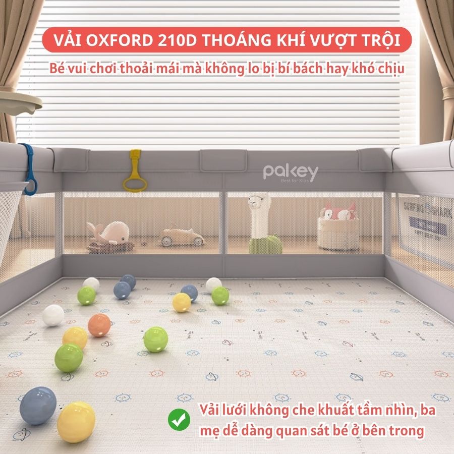 – Cửa quây được thiết kế khoá kéo từ bên ngoài, đảm bảo bé không thể tự ý mở ra. Mọi góc cạnh đều được bọc xốp mềm mại – vừa êm ái khi chạm vào, vừa bảo vệ bé an toàn trong từng chuyển động vui chơi.