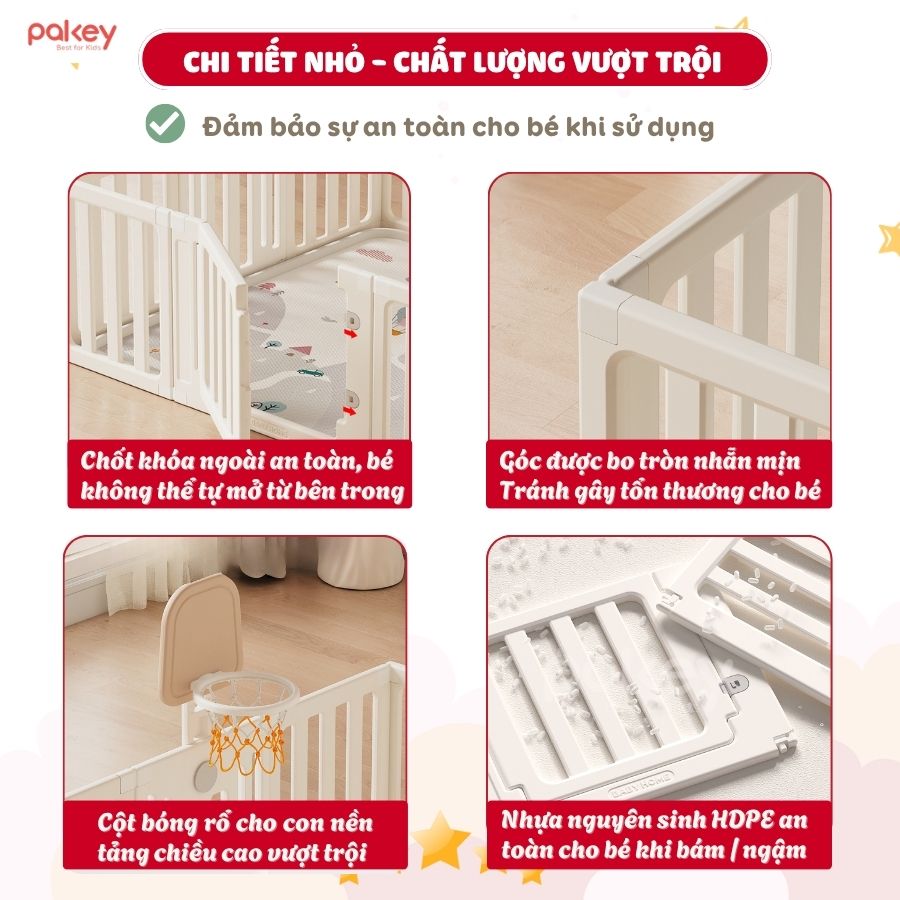 Quây cũi cho bé Pakey Babyhome NC02 được làm từ chất liệu nhựa nguyên sinh HDPE, không mùi, không chất độc hại, đạt tiêu chuẩn an toàn cho bé nhỏ.