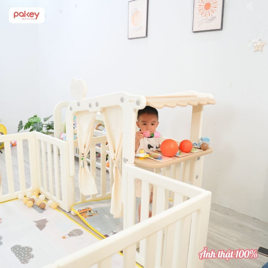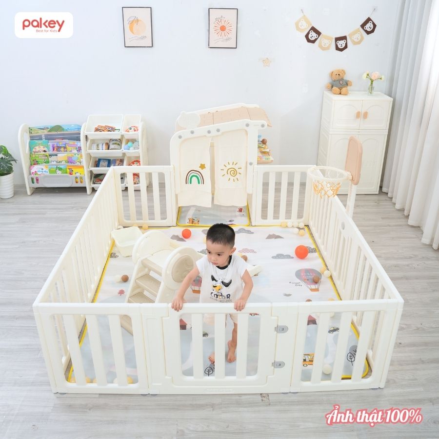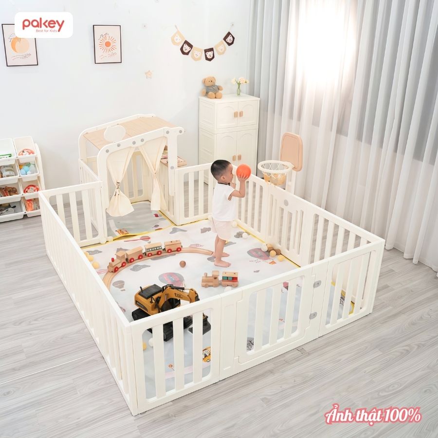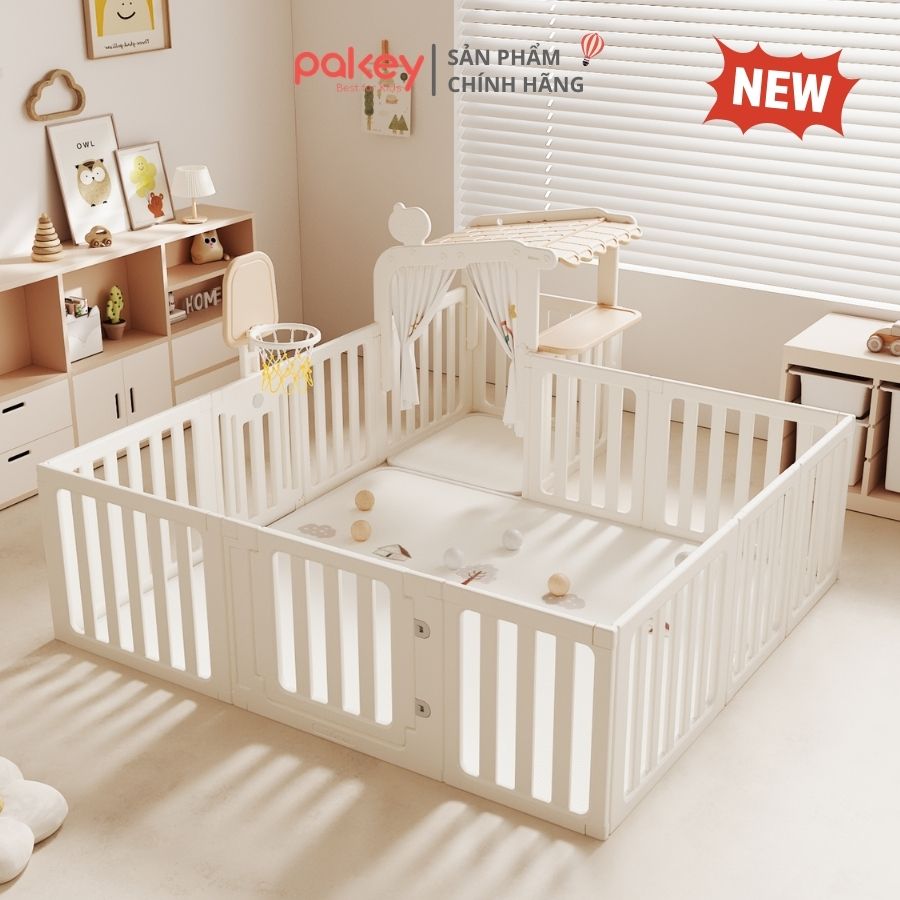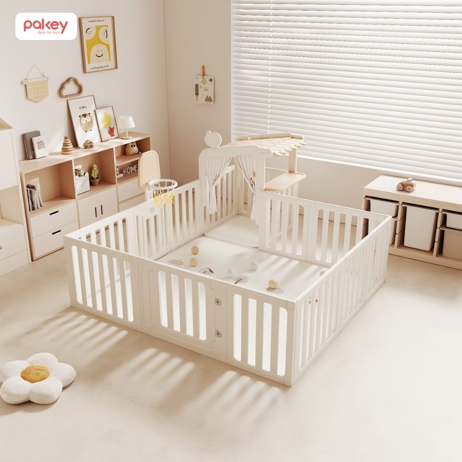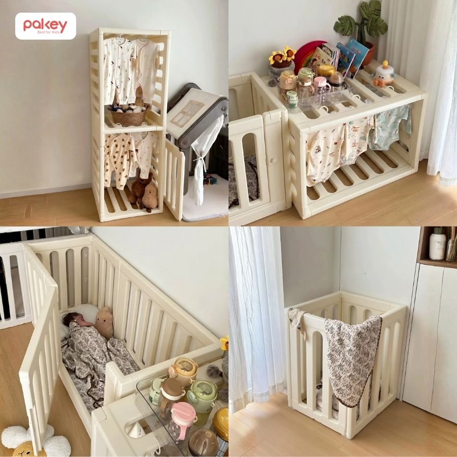 Ba mẹ đang tìm một mẫu quây cũi cho bé màu sắc nhẹ nhàng, thiết kế tối giản – sang trọng theo style Hàn Quốc thì chắc chắn không thể bỏ qua Pakey Babyhome NC02. Quây được tích hợp với nhà lều giúp bé có thêm không gian vui chơi thú vị.