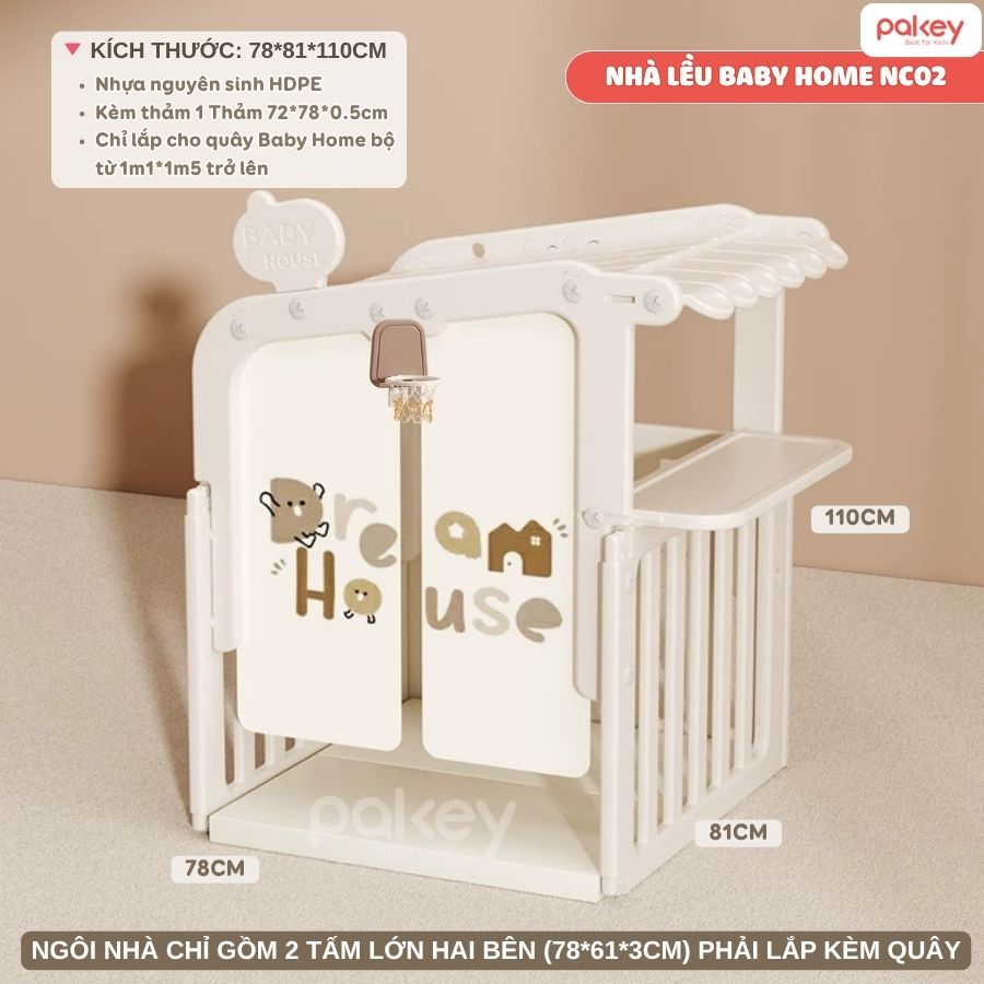Lưu ý: nhà lều Babyhome NC02 chỉ tương thích khi lắp ghép với quây cũi nhựa Pakey Babyhome NC02.