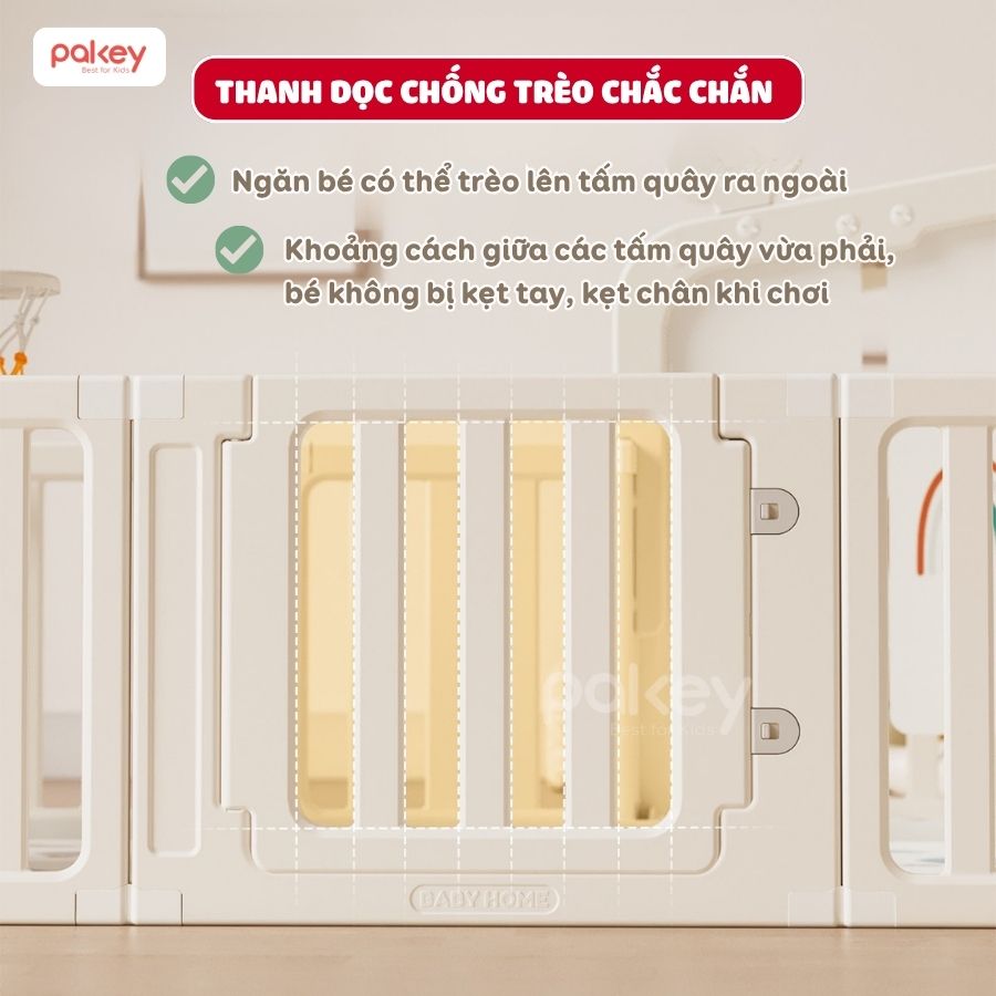 Tấm quây thiết kế sọc dọc khoa học, góp phần hạn chế tình trạng bé leo trèo, tăng cường độ an toàn khi bé chơi độc lập.
