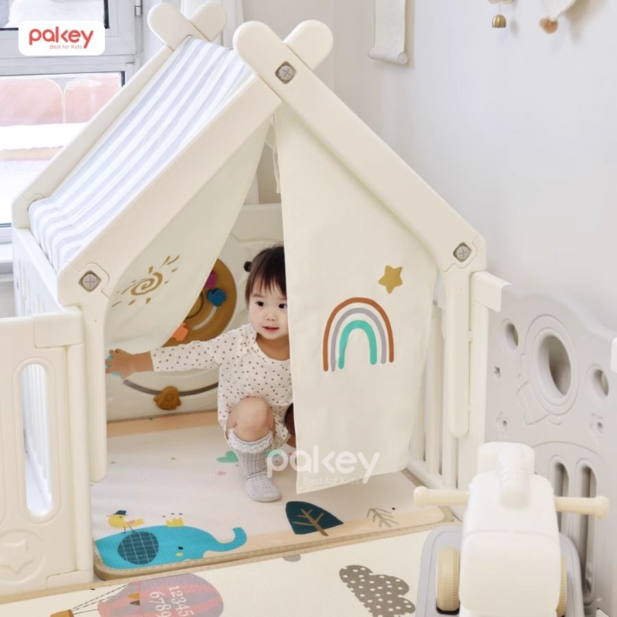 - Đặc biệt, bộ quây cũi nhựa có thêm nhà lều riêng tư tạo không gian ấm áp, bé có thể chơi trốn tìm hoặc chơi nhập vai, thậm chí là đọc sách và ngủ nghỉ tự lập.