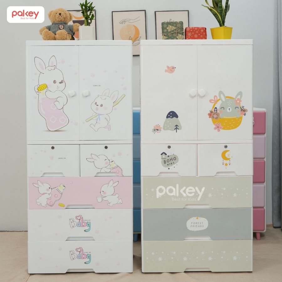 Tủ được thiết kế với gam màu trắng trẻ trung, điểm nhấn họa tiết hoạt hình xinh xắn và màu xanh lá tươi sáng tạo nên một món đồ nội thất “chuẩn gu” sống hiện đại. Ngoài màu xanh, ba mẹ cũng có thể tham khảo các mẫu tủ nhựa trẻ em Pakey HX004 màu sắc khác như xanh dương, hồng, cam.